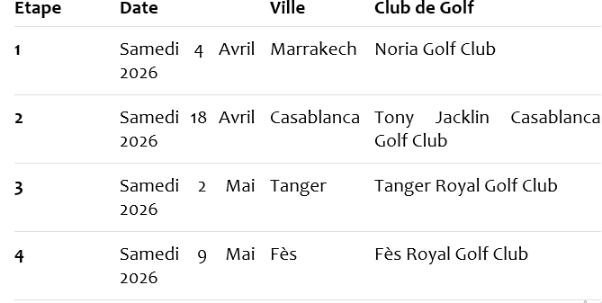 ✓ Grande Finale (Maroc) : Samedi 6 juin 2026 = RABAT (MONTGOMERIE RABAT GOLF CLUB)